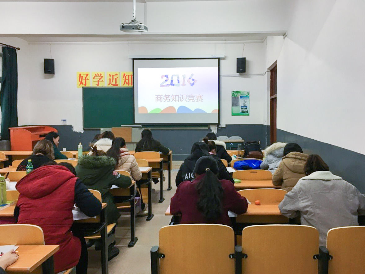 2016年11月30日星期三下午,商务英语专业在2216、2214、2209三个教室同时举行了商务知识竞赛。此次大赛旨在培养学生的商务英语应用能力,提高学生商务知识的素质,培养学生学习兴趣,商务英语系2014级和2015级共计98人参加了此次竞赛。