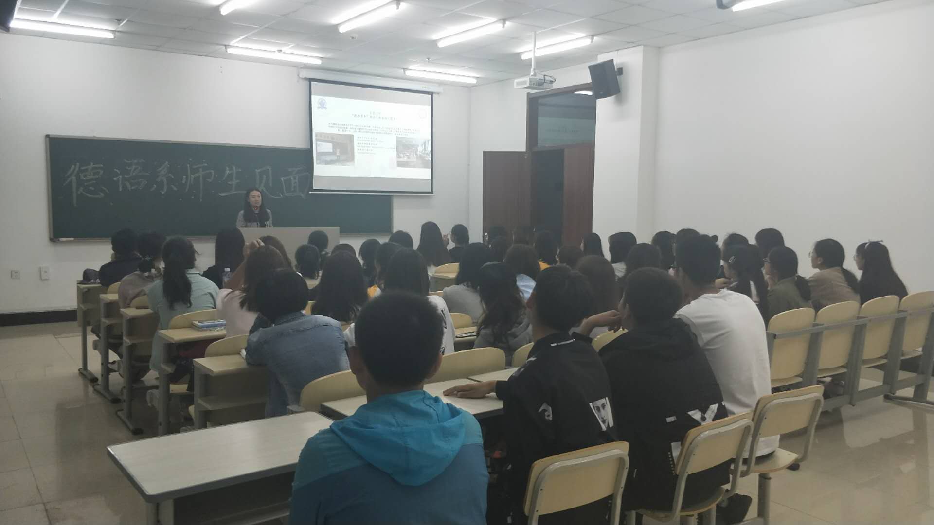 首先,于博向新生介绍了德语系的发展历程、专业特色、培养目标、基础核心课程以及就业方向等,并详细介绍了学校教学管理文件。最后专业教师分别从不同角度介绍专业情况。