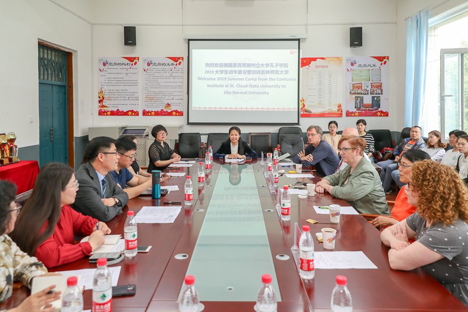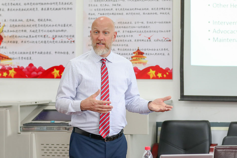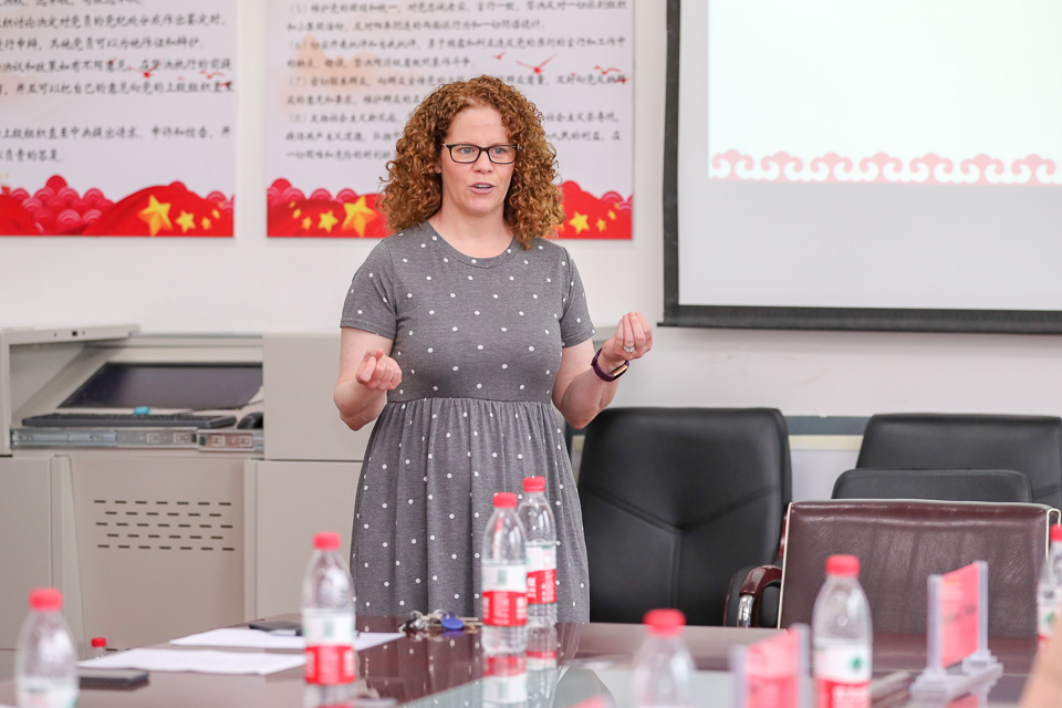 为促进中外学术交流,在美国圣克劳德州立大学孔子学院2019大学生访华夏令营营员到访太阳成官网之际,外国语学院英语系特邀请圣克劳德州立大学孔子学院随团访华教师,于5月19日在会议室举办了中美教师学术交流研讨会。英语系、商务英语系教师和部分学生代表参加了此次研讨。会上,圣克劳德州立大学社区心理咨询和家庭治疗系副教授Susan Darault Dowds和特殊教育系主任Bradley J. Kaffar教授分别做了题为“What Science Really Tells Us about How to Teach Reading”、“Academic Writing Skills”的讲座;其社会学系主任Stephen E. Philion教授则用一口流利的中文分享了其作为公共社会学家开展社会调研工作的收获;其社会学系教授左际平博士介绍了夏令营开设的中国游学体验课程目标与设计。