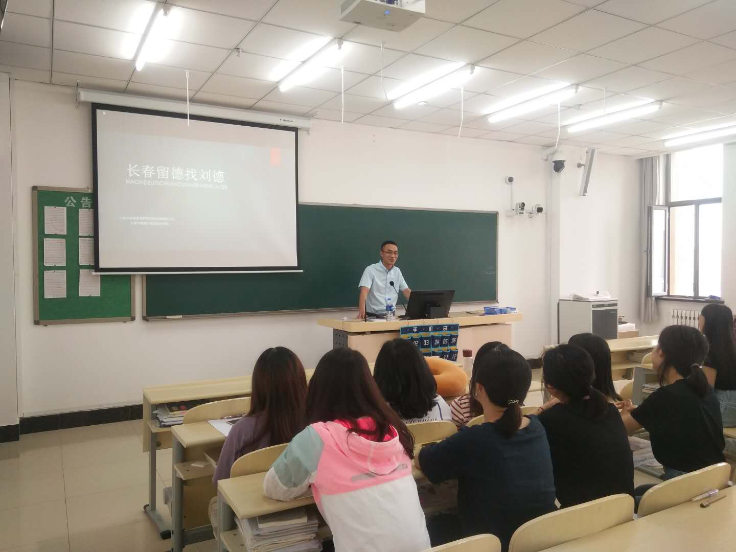 2019年6月13日上午,长春市瑞驰外语学校刘校长一行四人来到我院长春校区为德语系2016级学生进行实习生招聘宣讲会。德语系主任于博、德语系2016级全体学生参加了此次宣讲会。