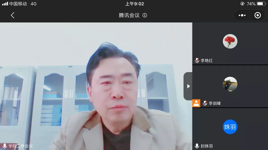 12月29日上午,学院通过腾讯视频会议方式召开期末总结暨寒假工作会议,党委书记王申、院长李淑华等院领导出席会议,全体教职工参加会议。会议由李淑华主持。