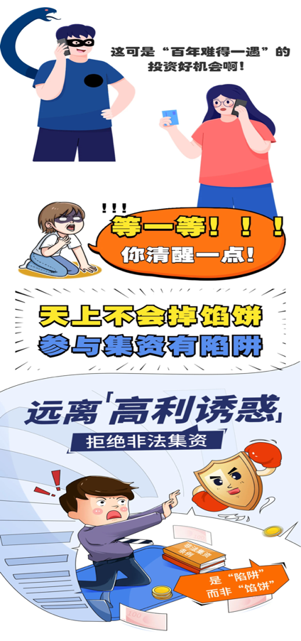 天上不会掉馅饼,掉下来的不是“圈套”就是“陷阱”。要坚守理性底线,想想自己懂不懂,比比风险大不大,看看收益水平合不合实际,问问家人朋友怎么看,不要被赌博心态和侥幸心理蒙蔽双眼!