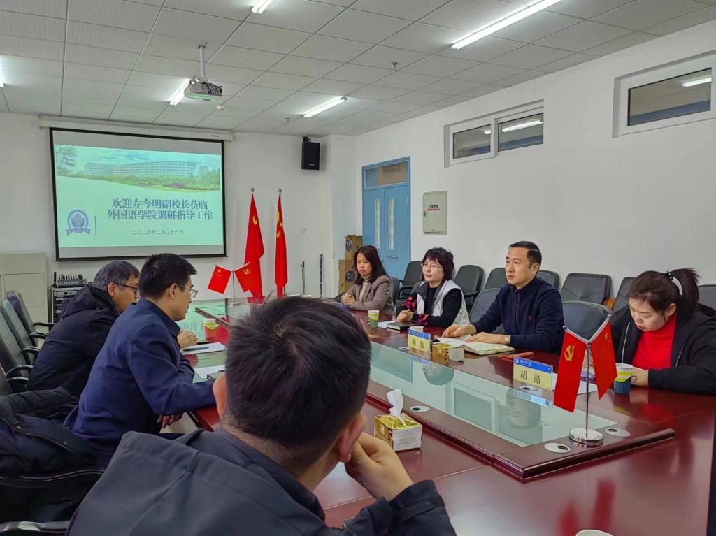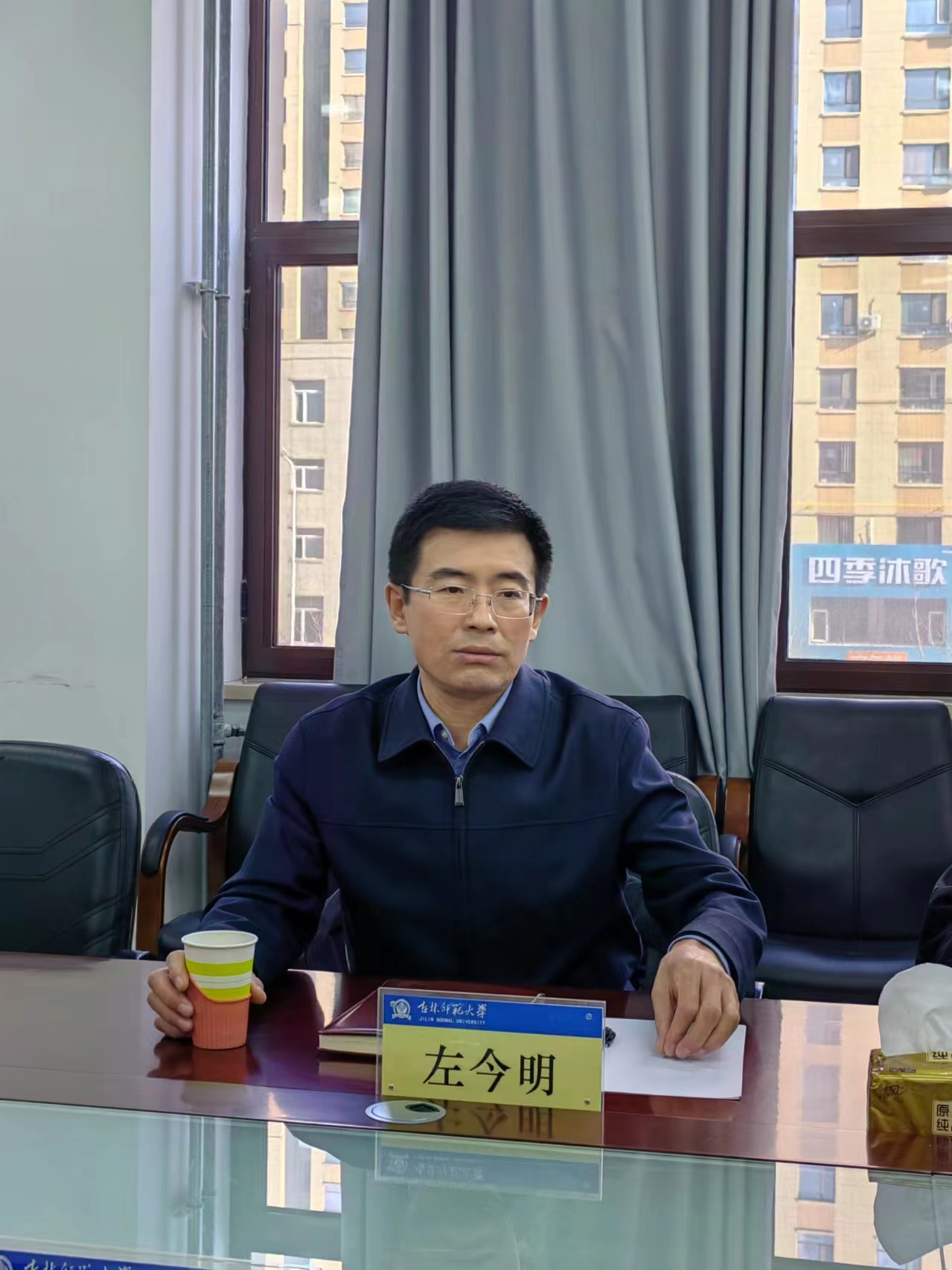 2月26日上午,校党委常委、副校长左今明一行来学院走访调研指导新学期开学各项工作,信息网络中心主任董延华、科长郑浩陪同调研,院长李淑华、党委书记韩强、副院长李艳红、党委副书记胡晶,办公室主任赵天琪在双创2楼会议室参加汇报会。会议由李淑华主持。