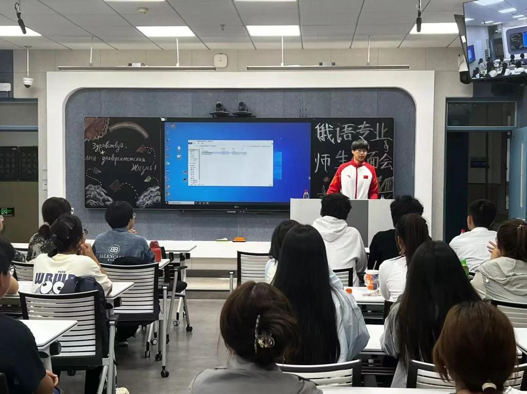 管伟华同学讲述了从大一到大四不同时期高效学习俄语的方法,分享了自己的学习经验。黄俊浩同学讲述了留学的相关事宜,使同学们对赴俄罗斯留学有了初步的认识。曹怡欣、王梦雨、张越同学以自身为例,介绍了自己学习俄语的心路历程,激励了大家的学习热情。高泽锐同学向大家介绍了学习俄语的常用软件,助力大家更好地学习俄语。王心月同学介绍了班委和学生干部的相关工作事宜,让大家对班委和学生干部的工作有了初步的了解。高泽霖同学向大家说明了学习与工作之间的关系,并鼓励大家在学习之余多参加学团活动。