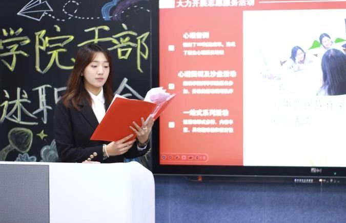 12月11日下午,学院在11904-2教室召开本学期团学联干部述职大会,党委副书记胡晶到会指导,团委书记范妙然、全体辅导员出席,学院团学联负责人及学生会生活舍务部、实践部,社联技能部负责人参加会议。