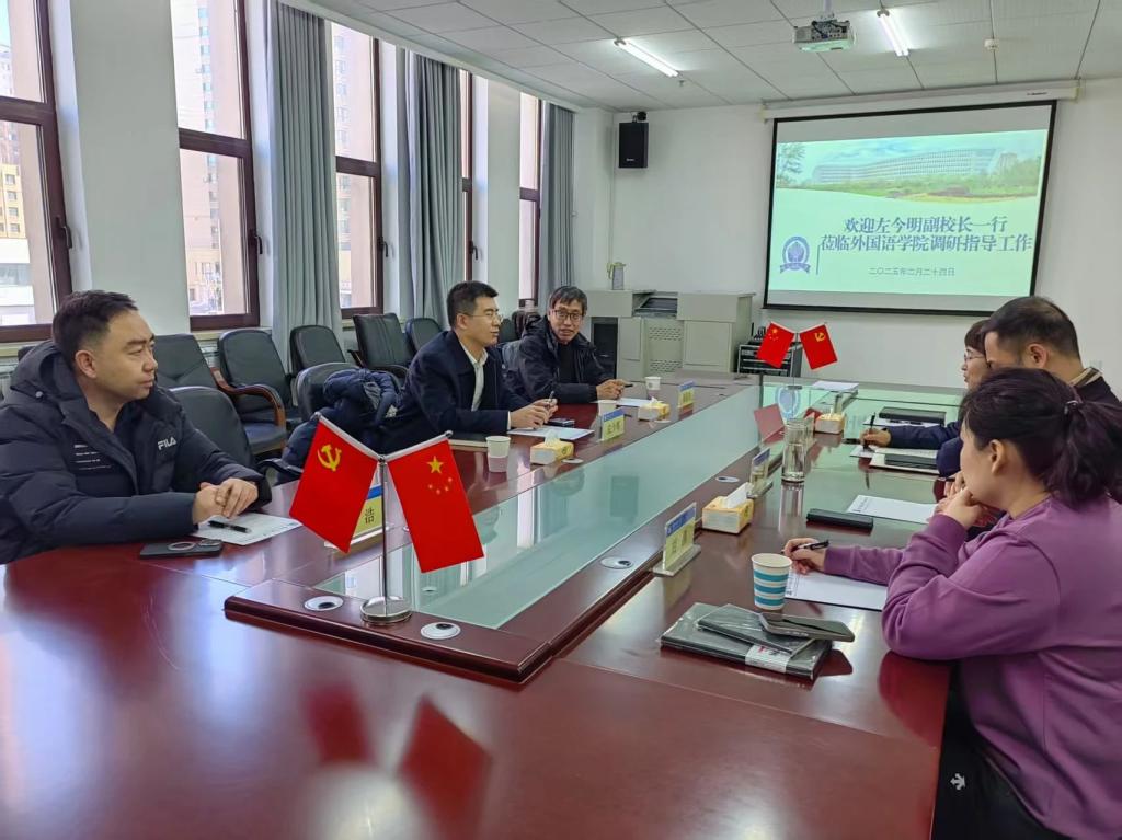 2月24日上午,校党委常委、副校长左今明一行来学院走访调研指导新学期开学各项工作,信息网络中心主任董延华、科长郑浩陪同调研,院长李淑华、党委书记韩强、副院长李艳红、党委副书记胡晶、办公室主任赵天琪在双创2楼会议室参加汇报会。会议由李淑华主持。