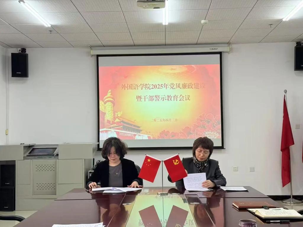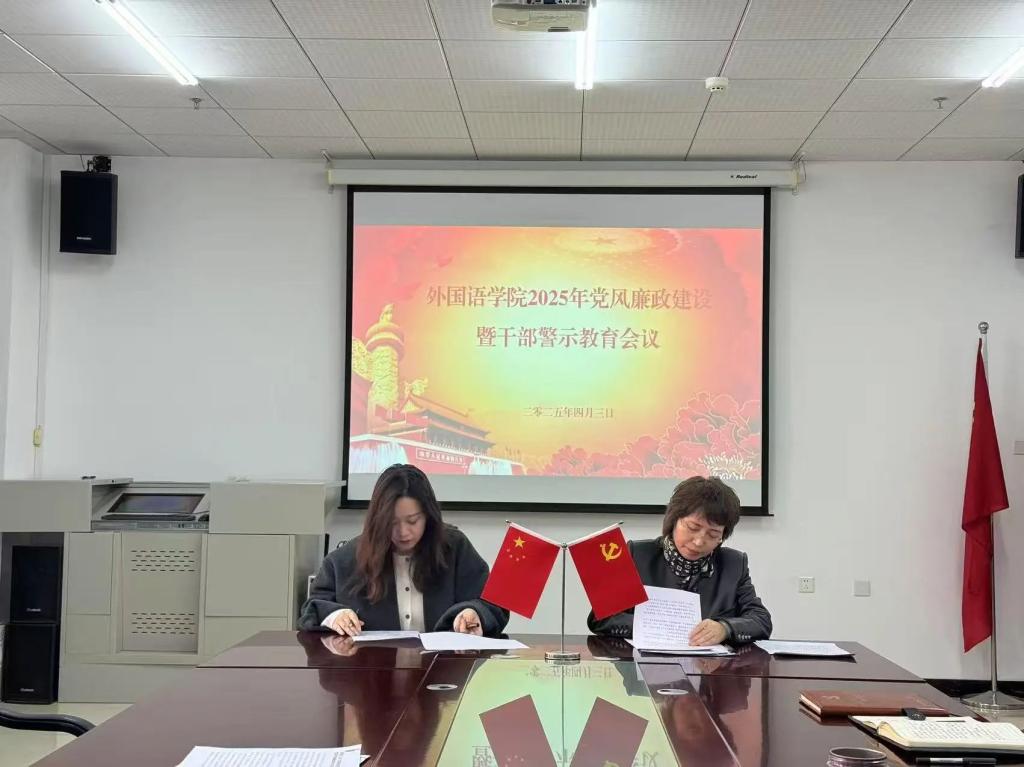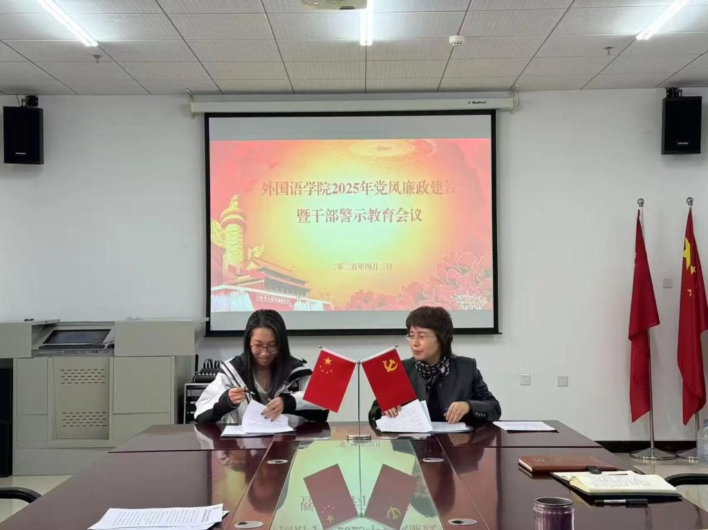 会前,与会人员集中参观了澳门太阳成集团廉洁自律教育基地。会上,李淑华同学工办、办公室、各专业签订《外国语学院教职工廉洁自律和师德师风承诺书》;赵岩传达了学校2025年党风廉政建设暨警示教育会议和干部勤政廉政集体谈心谈话会议精神及学校2025年纪检监察工作要点。