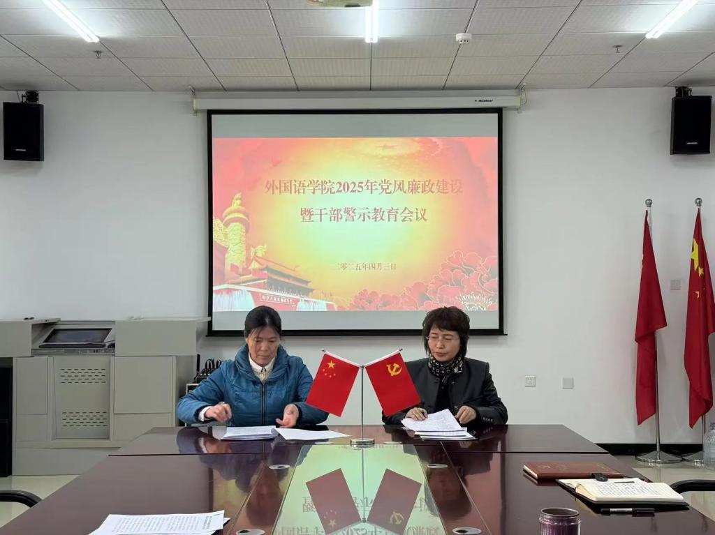4月3日下午,学院在双创2楼会议室召开外国语学院2025年党风廉政建设暨干部警示教育会议。党委书记韩强、院长李淑华、党委副书记胡晶,副院长赵岩、李艳红出席会议,各专业系主任、党支部书记,全体辅导员参加会议。四平、长春两个校区同步网络视频,韩强主持会议。