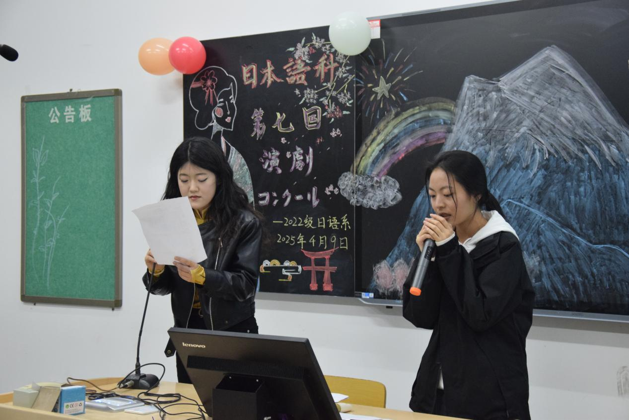 4月9日晚,日语系在11114教室举办第七届戏剧大赛,日语专业师生齐聚一堂,共同见证这一场充满语言魅力与创意火花的舞台盛宴。此次比赛面向2022级学生,大赛不仅是语言学习成果的集中展示,更是一场融合表达力、想象力与团队精神的青春庆典。