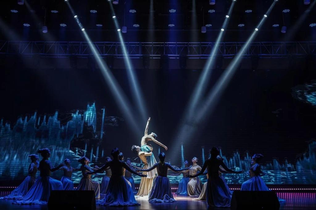 舞蹈编排精巧绝妙,舞台灯光交相辉映,与舞蹈主题形成巧妙呼应。演员们配合默契,动作整齐划一,通过丰富的队形与节奏层次变换,将《蓝梦长河》的深邃意境展现得淋漓尽致。舞至动情处,真挚情感直击人心。演出结束后,现场掌声如雷,经久不息,热烈的反响便是对这场艺术盛宴最有力的肯定。