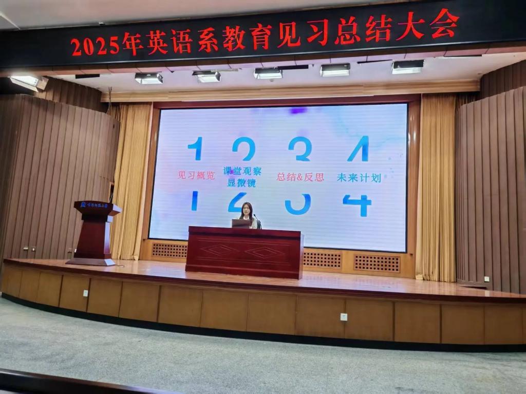5月14日下午,英语系在图书馆报告厅召开2025年度教育见习总结大会。副院长赵岩、英语系主任胡晓丽,教法教研室纪颖副教授、刘昊多副教授、丛琳副教授和何丽敏博士出席会议。2022级、2023级和2024级专升本学生参加会议。