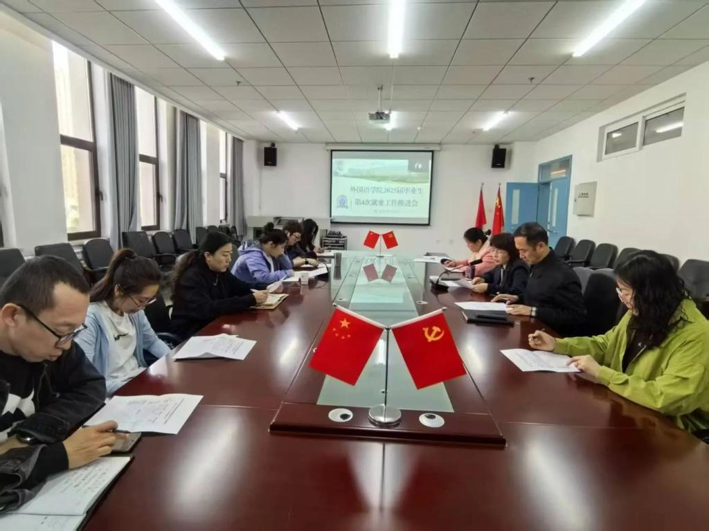 5月16日下午,学院在双创2楼会议室召开外国语学院2025届毕业生第4次就业工作推进会,院长李淑华、党委书记韩强、副院长赵岩、李艳红、潘雁,党委副书记胡晶出席会议,各专业系主任、学科负责人,全体辅导员参加会议,四平、长春校区同步网络视频。会议由李淑华主持。