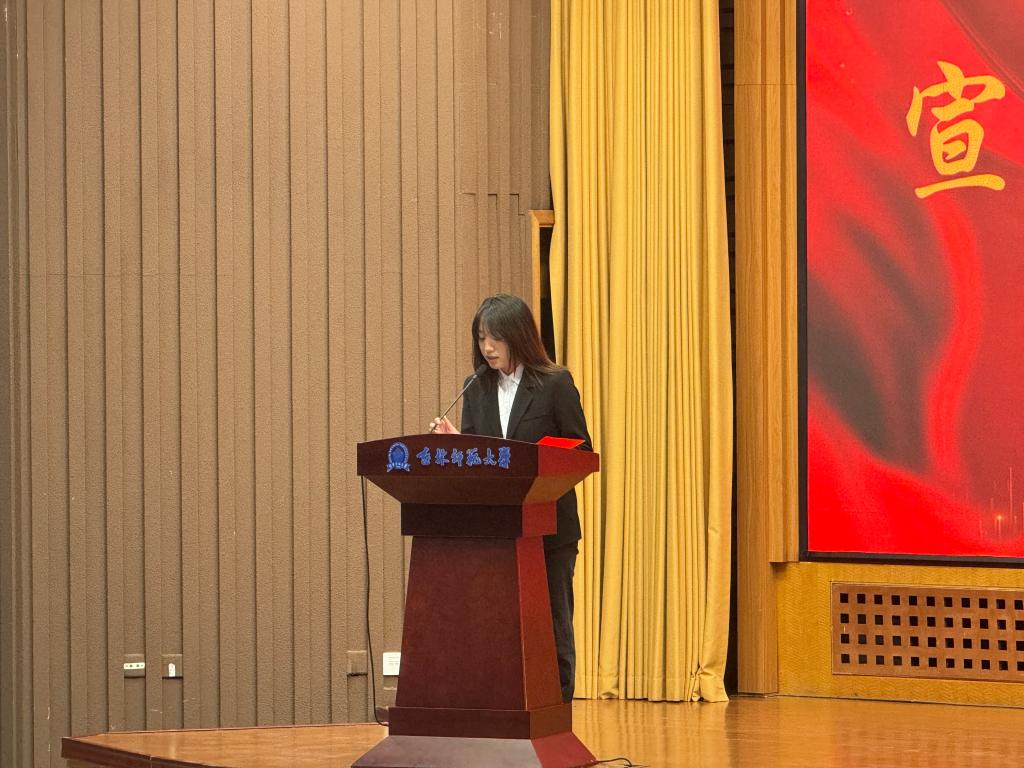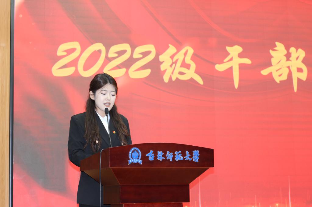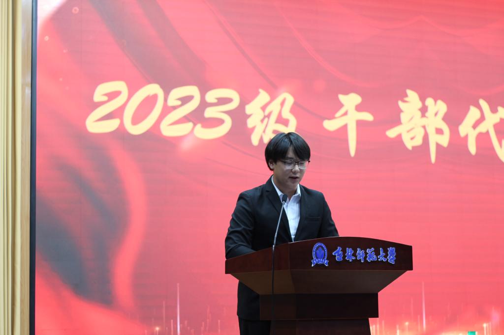 2022级干部代表宿予菁以舞蹈大赛筹备为例,分享了“服务力、执行力、创新力、凝聚力”的工作心得,并寄语新一届干部传承优良传统。2023级干部代表袁振泷郑重承诺,将秉持“学高为师,身正为范”的理念,在服务同学、创新实践和团队协作中勇担使命。
