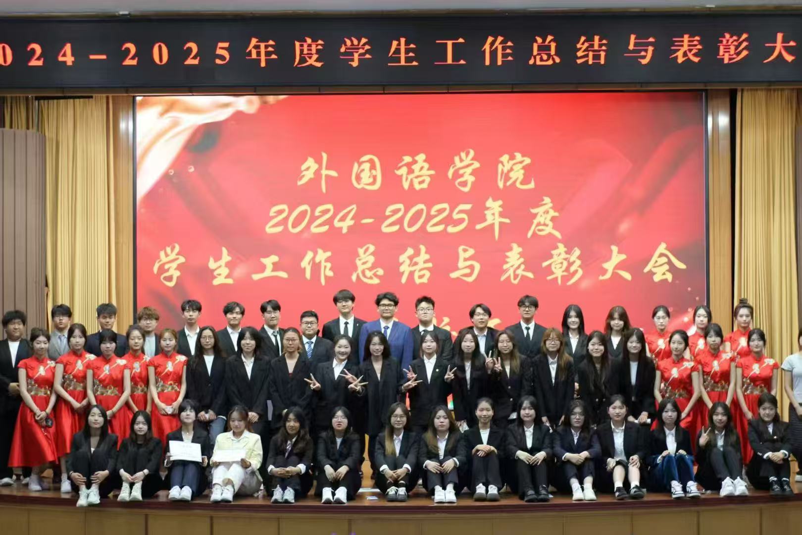 6月11日晚,学院在图书馆报告厅(1)召开外国语学院2024-2025年度学团工作总结表彰大会。学院党委副书记胡晶、团委书记范妙然、辅导员柳铭钰、陈建飞出席会议,2022级干部代表、2023级全体干部及2024级本科生参加会议。会议由2023级团委学生副书记朱洪阅主持。