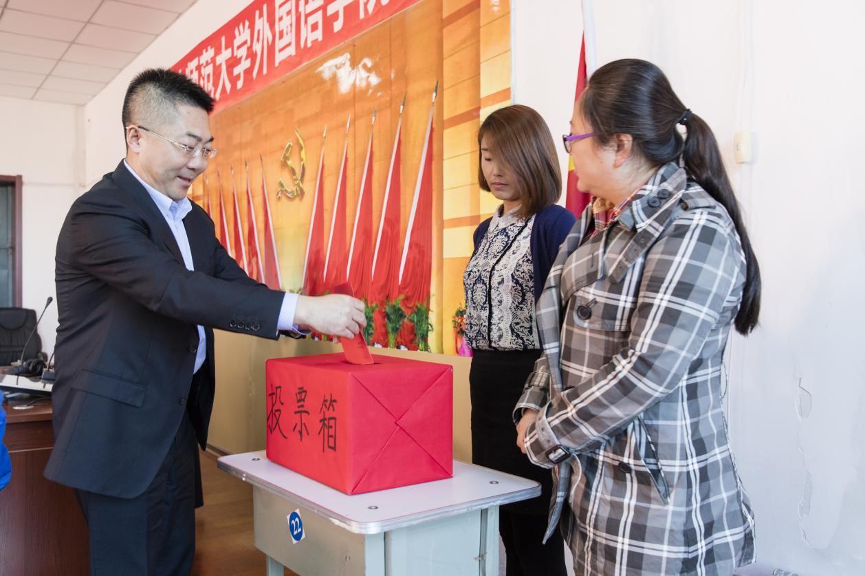 中共澳门太阳成集团外国语学院委员会于2016年9月28日召开了党员大会,进行换届。大会首先听取并审议了由王申代表外国语学院党委作的“求真务实谋发展 凝心聚力谱新篇”为主题的工作报告。党员们一致认为:党委工作报告立意高远、主题鲜明、重点突出、目标明确、措施得力,贯穿了科学发展的理念和求真务实的态度,具有很强的思想性、前瞻性和指导性,是一个凝聚力量、振奋精神、谋划发展的报告,是一个统一思想、激发斗志的报告。之后,按照《中国共产党基层组织选举工作条例》和学校党委的有关规定,经与会党员充分酝酿讨论,根据多数党员的意见确定候选人之后,采用无记名投票的方式和差额选举的办法,选举产生了中共澳门太阳成集团外国语学院委员会委员。9月28日,新一届委员会召开了第一次全体会议,以无记名投票的方式和等额选举的办法,选举产生了外国语学院党委书记、副书记。