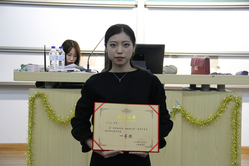 本次活动主要以竞赛演说的形式进行展开。参赛选手们先后为同学们分享对《毛泽东传》、《红楼梦》、《白鹿原》以及《艺术的故事》等书籍,纷纷以深入浅出的语言同大家分享读书时的心得体会,通过交流分享使大家能够掌握书籍的大体脉络与核心要义,在营造良学院文化建设方面充分发挥示范引领的带头作用。最终,学院2017级4班孙艺航同学凭借突出的表现拔得头筹,荣获本次活动的一等奖。