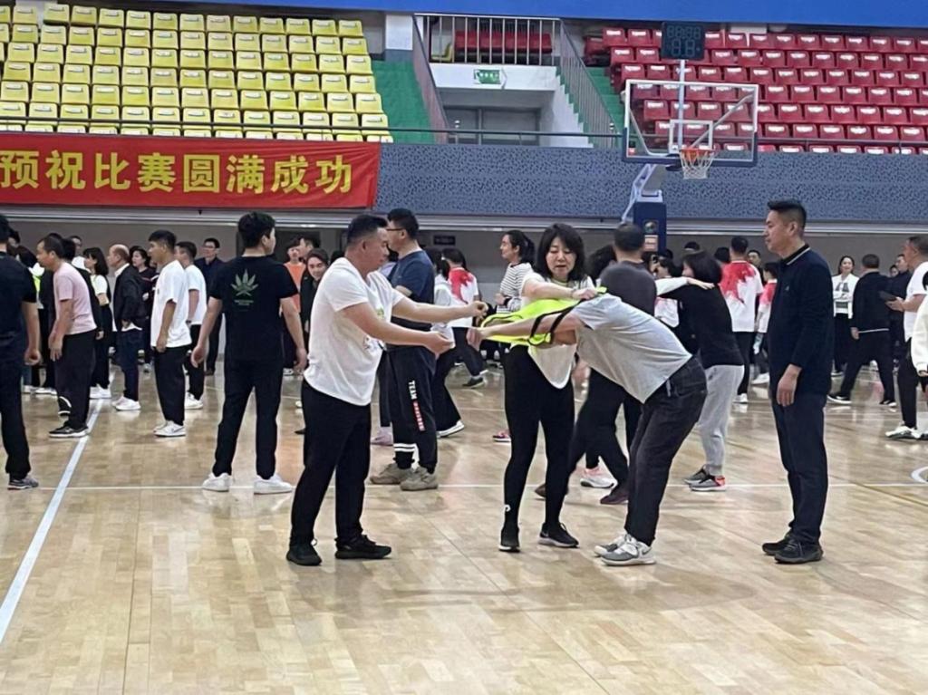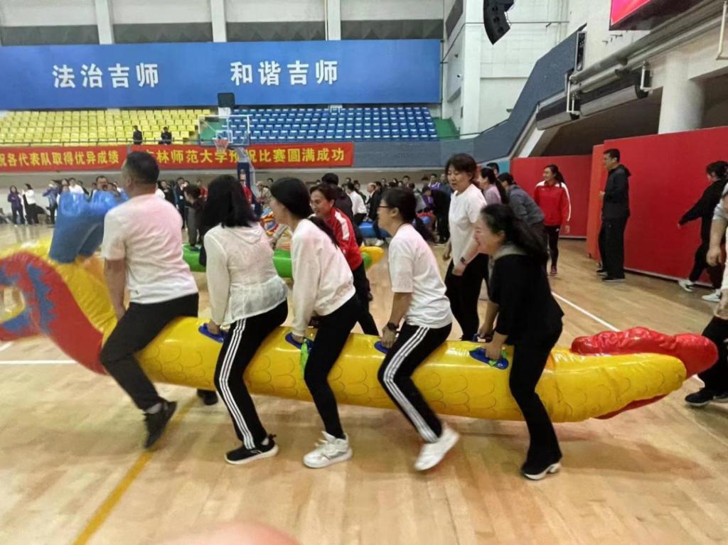 我院教师参加了一分钟毽球、一分钟跳绳、穿衣接力、旱地赛龙舟比赛项目。参加穿衣接力比赛的刘昊多、李志宏、于波、李文刚、陈建飞、池美英、徐磊、姜云朋、张彧、韩振宇等老师得到了第七名的好成绩;参加一分钟跳绳的姜云朋、张彧、王春红、李春兰、刘志岩、陈建飞、李文刚、池美英、李婷、韩振宇等老师赛出了第五名的优异成绩。