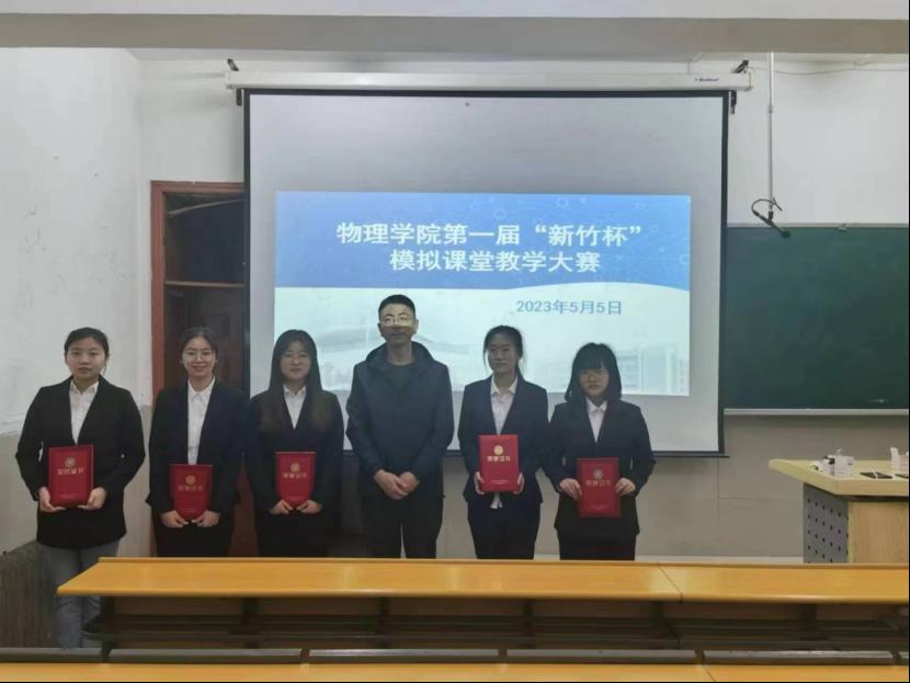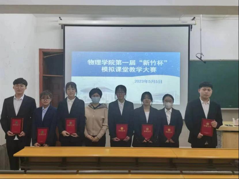 教育乃兴国之本,教师是立教之本,师范生作为未来的教师,其专业技能素质极其重要。为增强师范生的教学技能和创新能力,提高师范生综合素质,帮助师范生在学习教学理论的基础上,熟练应用于实践,不断提高自身教学实践能力,积累教学经验,为今后走上讲台打好扎实的基础,4月27日和5月5日,物理学院第一届“新竹杯”模拟课堂教学大赛在3201教室成功举办。