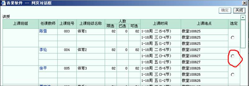 6.选择对应课程后边选择按钮,就会出现待选的课程。如下图所示