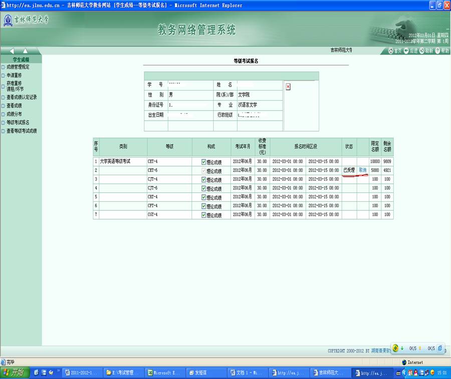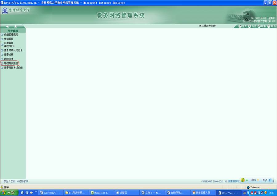 第四步:进入到如下界面后,选择“等级考试报名”