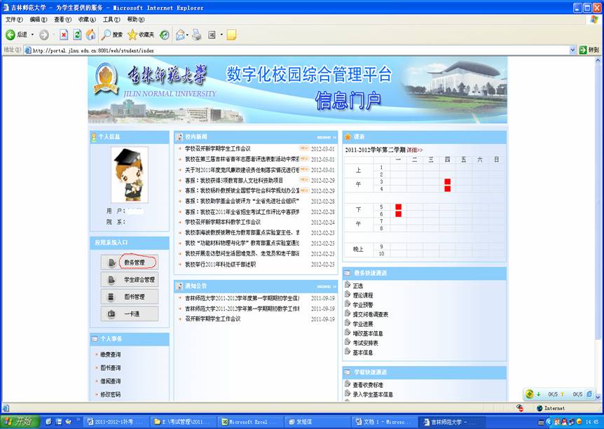 第二步:进入数字化校园综合管理平台信息门户后,选择左侧的教务管理