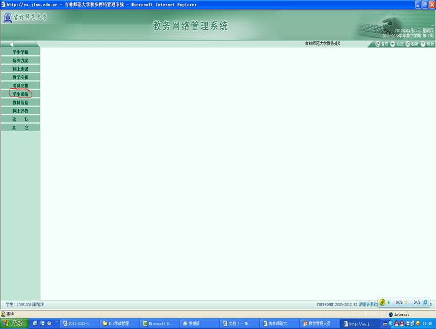 第三步:进入教务网络管理系统后,点击“学生成绩”