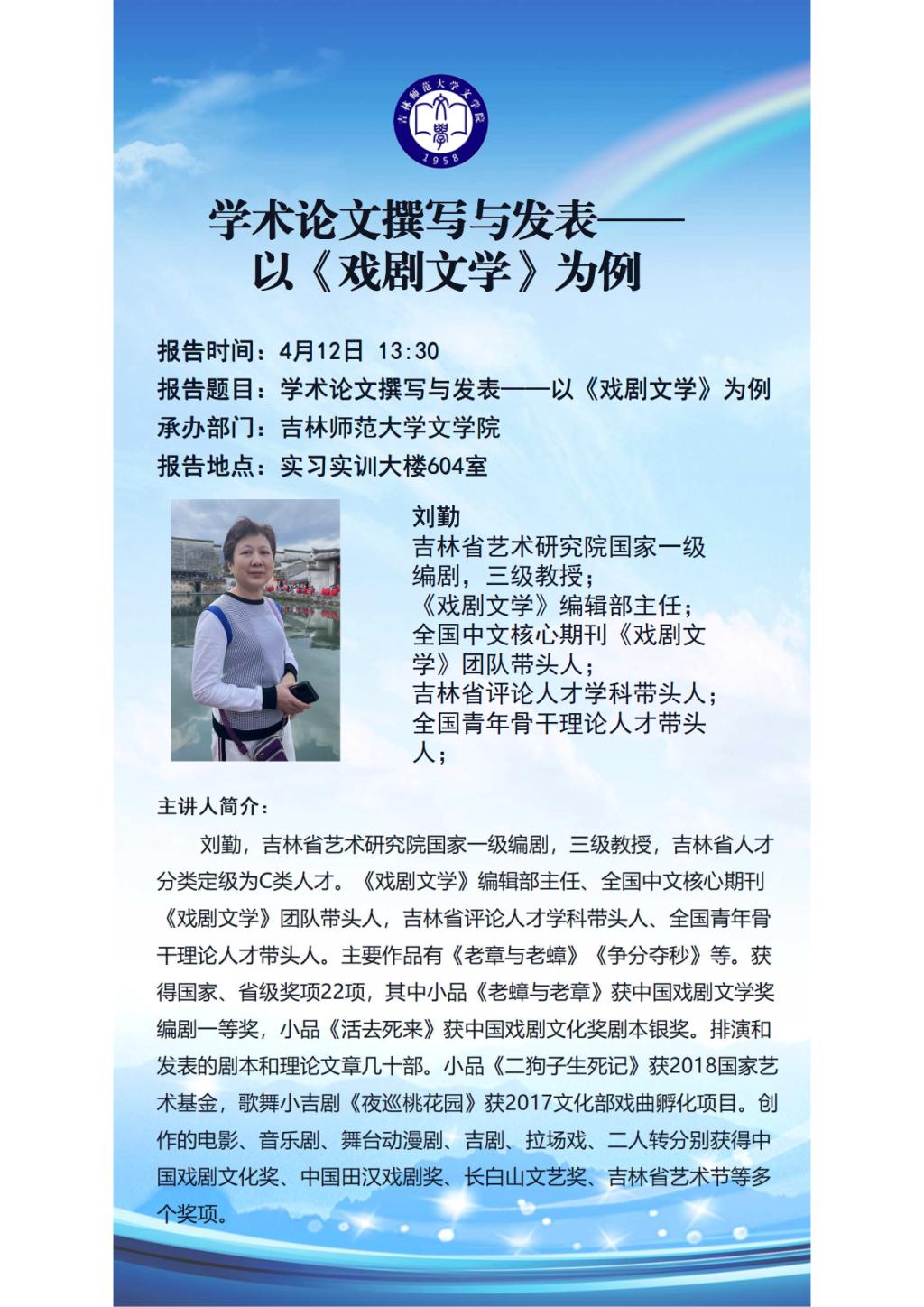 【讲座预告】学术论文撰写与发表——以《戏剧文学》为例