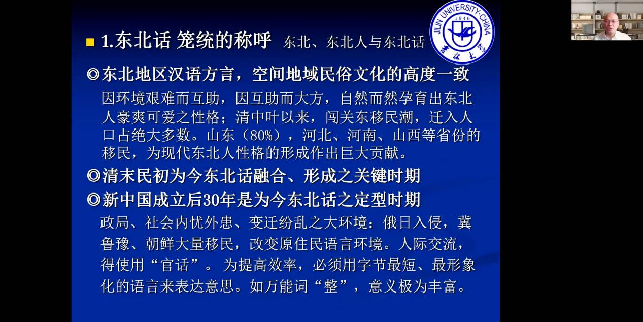 秦曰龙教授从汉语东北话的定义入题,分别从外国人学习汉语教科书中的“东北话资料”、历代文艺学资料新发掘、汉语方言文献与田野调查资料、用“历史文献”的眼光看待汉语东北话资料的学术价值等方面,概括了目前汉语东北话研究的现状。讲座的尾声部分,秦曰龙教授提出应当重视当下发生的资料的价值,留存好、保存好资料,为以后的东北话研究打好基础。讲座结束后,秦曰龙教授与文学院师生展开了互动研讨,对文学院师生感兴趣的相关学术问题进行了交流。本次讲座文学院师生线上线下近七十人参会,秦教授与师生的互动交流激发了师生对东北话研究的兴趣,讲座获得了圆满成功。