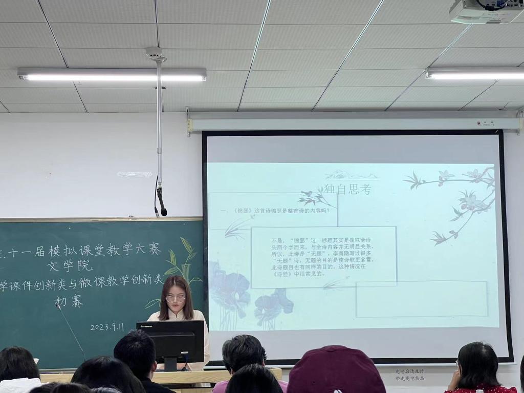 2023年9月5日至9月11日,文学院成功举办了澳门太阳成集团第三十一届模拟课堂大赛初赛。大赛全面落实深化创新创造教育改革、加强师范生创新创造教育目标,由文学院教师竞赛指导团队组织开展了教学设计创新类、教学课件创新类、微课教学创新类三个赛道的比赛。