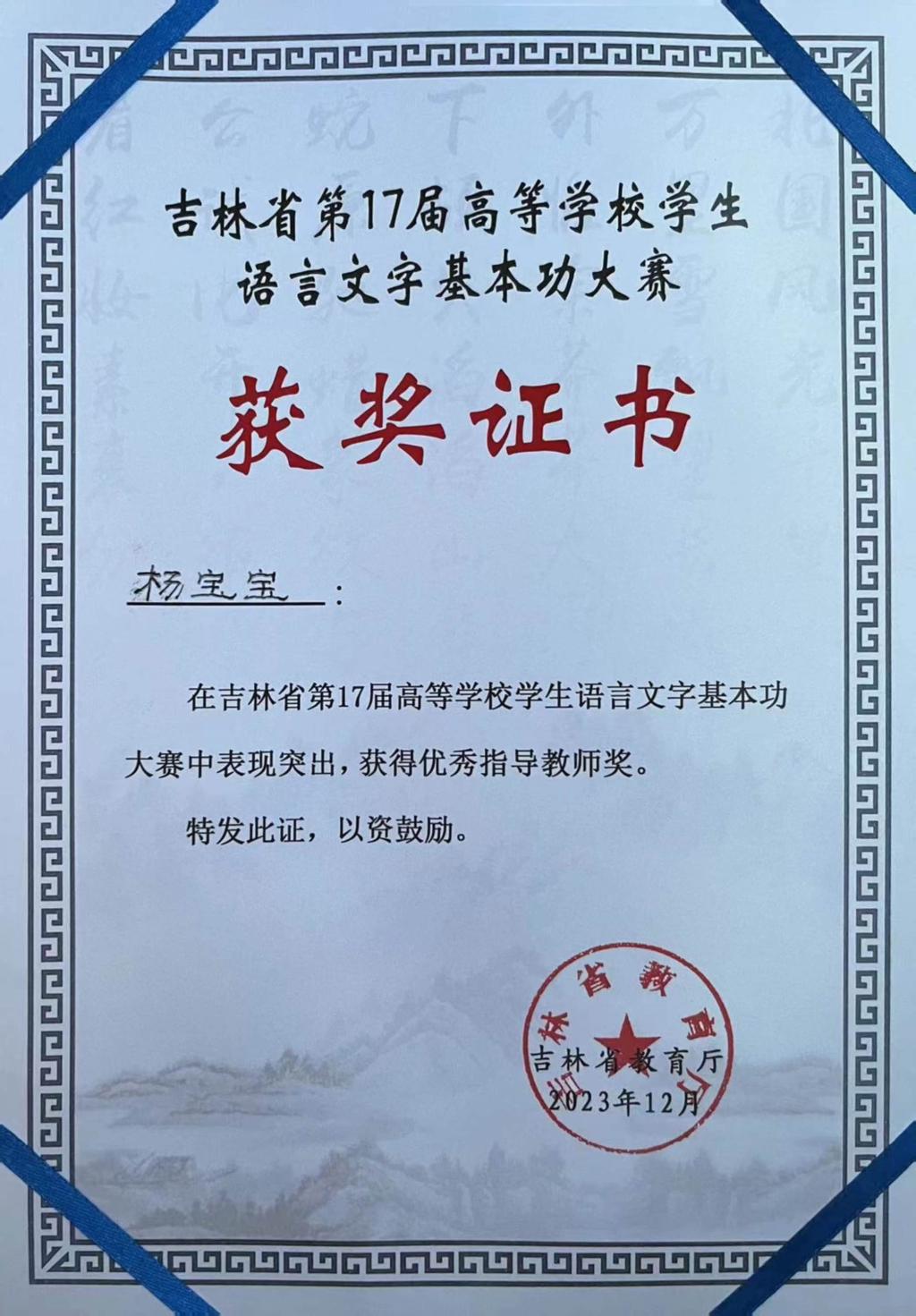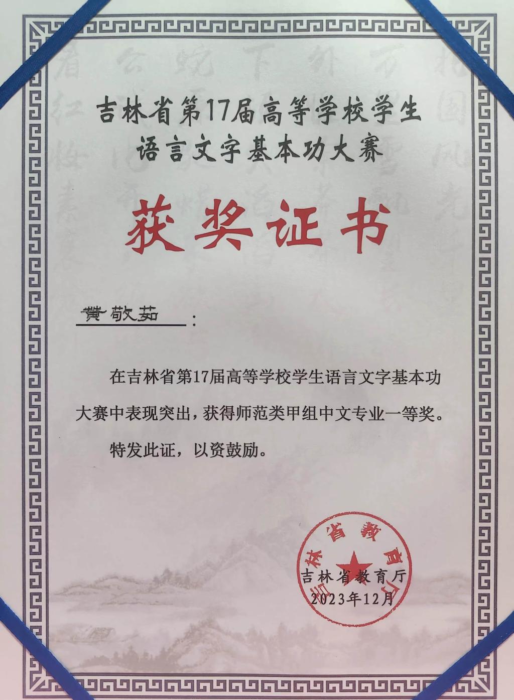 12月3日,由吉林省教育厅、吉林省语言文字工作委员会主办,吉林省普通话培训测试中心、吉林教育电视台承办的“吉林省第17届高等学校学生语言文字基本功大赛”,在澳门太阳成集团长春校区落下帷幕。在此次大赛中,太阳成官网获得师范甲组团体一等奖。其中我院黄敬茹同学在本次大赛中表现突出,获得师范类甲组中文专业一等奖。我院杨宝宝老师荣获优秀指导教师奖。