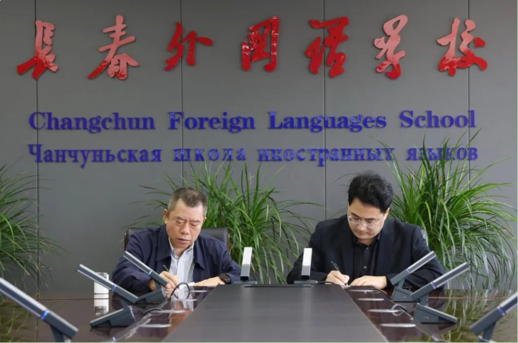 文学院副院长李振峰与长春外国语学校党委副书记杨忠善签订实习实践基地协议