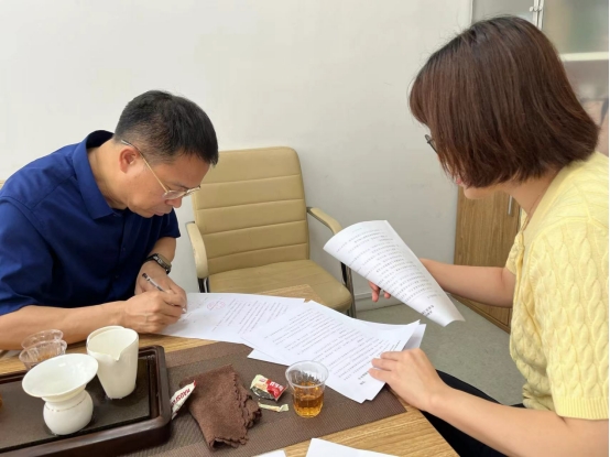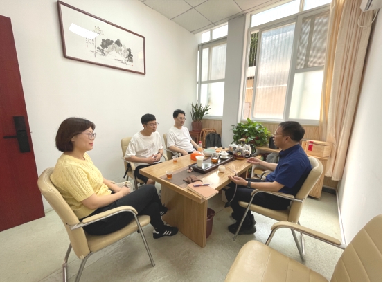 文学院副院长李振峰、书法学系主任杨宝宝、汉语国际教育系主任莫娇与福州市晋安区教育局局长杨佳松座谈