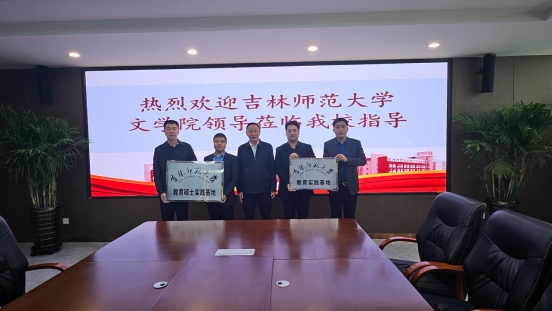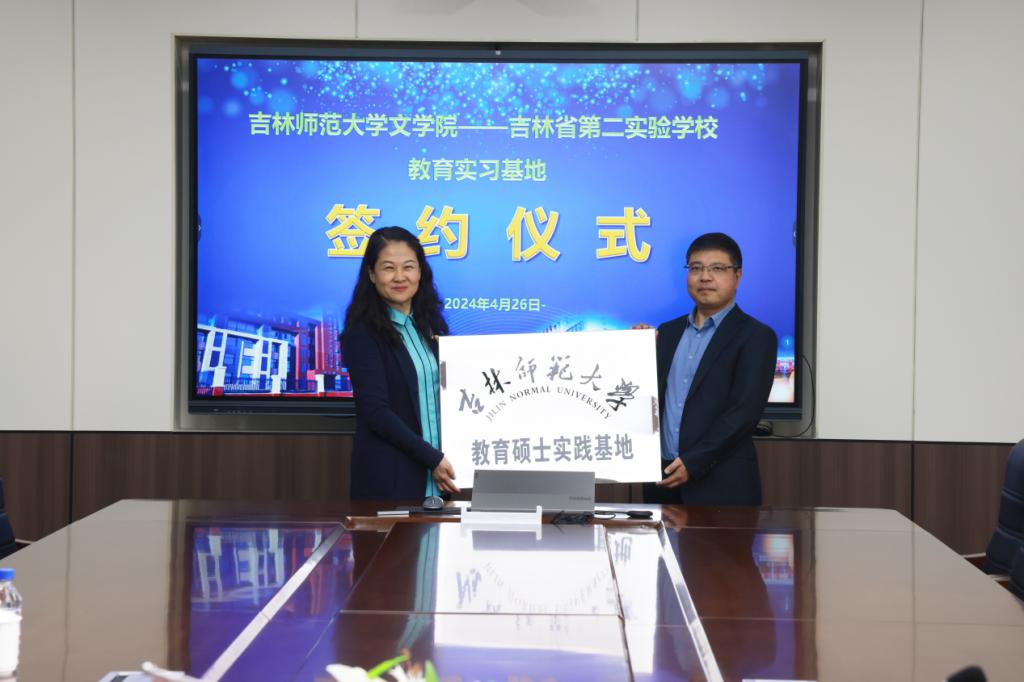 文学院党委书记杨卫东与吉林省第二实验学校副校长石馨为教育硕士实践基地揭牌