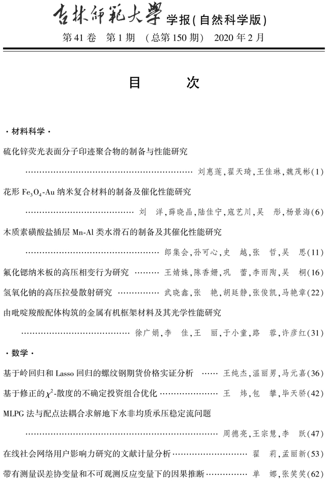 《澳门太阳成集团学报》(自然科学版)2020年第1期