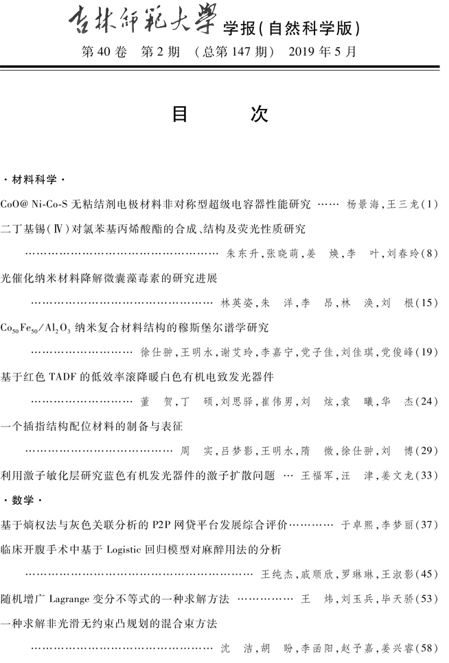 《澳门太阳成集团学报》(自然科学版)2019年第2期