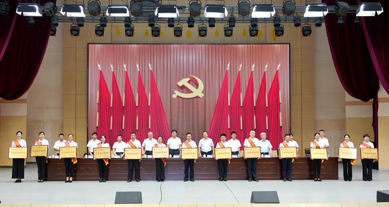 校领导为受表彰的先进基层党组织颁发奖牌