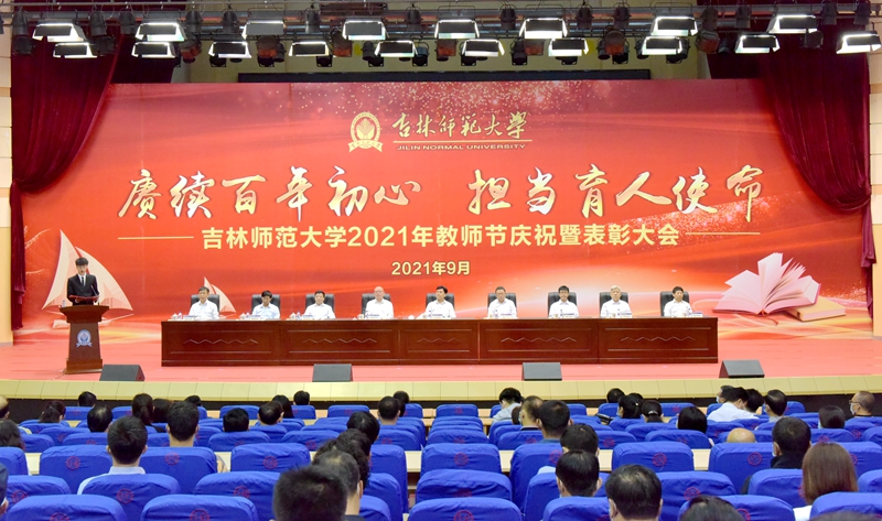 9月10日,学校在音乐厅隆重召开2021年教师节庆祝暨表彰大会。党委书记王喜库、校长杨小天,党委副书记祖国华、刘万民,党委常委、纪委书记、监察专员侯奎岩,党委常委、副校长李海波、曲殿彬、张作岭,副校长赵经武出席会议。全校副处级以上干部、各级人大代表、政协委员、民主党派负责人,离退休干部代表,受表彰教师代表,学生代表参加会议。