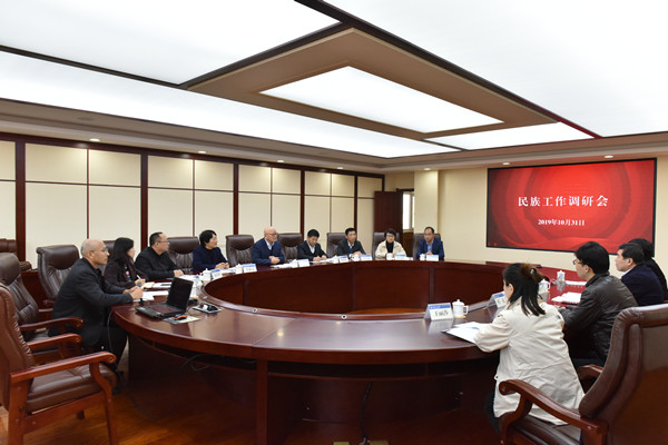 10月31日,吉林省民委文教处处长高长升、文教处科长程达在市民委调研员于红陪同下来太阳成官网对民族工作进行调研。学校在第一教学楼八楼会议室召开汇报会。校党委副书记祖国华、党委常委、副校长张作岭出席会议,相关部门负责人参加会议。