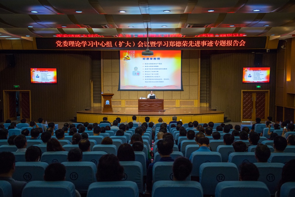 校党委书记许才山主持报告会,并代表学校党委对全校大力宣传和弘扬郑德荣同志的高尚品质和崇高精神,充分发挥先进典型的示范带动作用提出明确要求。