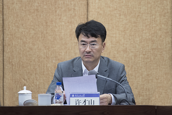 许才山代表学校党委作表态发言。他说,省委第七巡视组反馈的问题实事求是,学校党委完全接受。本次巡视“回头看”反馈意见的整改落实工作是学校当前和今后一个时期的重大政治任务,要切实把思想和行动统一到省委和省委第七巡视组的工作要求上来,坚持把各项整改工作落到实处。第一,要以严的精神强化责任落实。深入贯彻省委和省委巡视组的工作部署,充分发挥学校党委的领导核心作用,加强对巡视整改工作的领导和督导。坚决履行好全面从严治党的“两个责任”,切实增强巡视整改工作的紧迫感、使命感和责任感。第二,要以实的作风逐项抓好整改。对于巡视组反馈的问题,学校将分类建立整改台账,逐项认真研究,确保各项整改任务落到实处。要严格执行领导干部个人事项报告制度,努力营造风清气正的好氛围好环境好生态。第三,要以铁的纪律强化跟踪督办。学校党委班子成员要带头抓好自身整改,带头抓好分管部门的整改、领衔分管部门的整改,党委常委会将定期听取整改落实情况。学校各级党组织要聚焦整改,把工作重心落在整改工作上来。学校纪委要运用好监督执纪问责的“四种形态”,为学校健康快速发展保驾护航。第四,要以硬的措施推进学校发展。要以此次巡视“回头看”为新的契机,自觉贯彻落实巡视组的反馈意见和省委要求,梳理学校存在的突出问题,破解制约学校发展的瓶颈,加快推进高水平师范大学建设步伐。