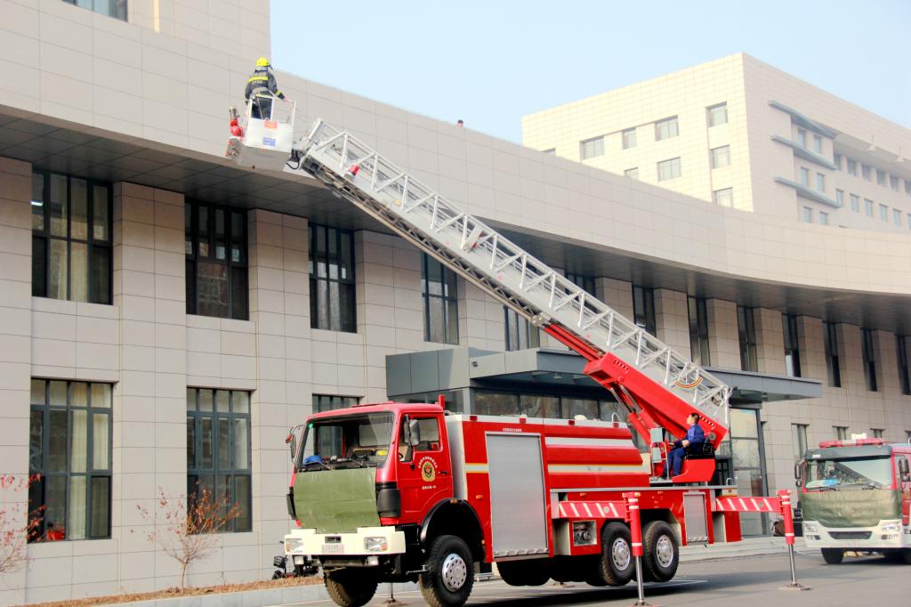 消防演练现场,保卫处全体工作人员、微型消防站消防员、14个学院学生、铁西消防救援大队消防员等近400人参与火灾逃生自救实景演练。演练分为两个阶段进行。第一阶段为营救高层被困学生,铁西区消防救援大队英雄中队共派出三辆消防车参与救援,一台直臂云梯消防车负责营救被困学生,两辆高压水罐消防车负责灭火。第二阶段为消防器材使用方法讲解。微型消防站的消防员为师生员工讲解灭火器、灭火毯、消火栓等消防器材的使用方法,进行现场演示,并指导师生员工进行现场操作,使师生员工掌握了消防器材的使用方法。