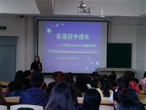 为了使大一新生能够正确对待与化解学习、生活中的困惑,提高新生的心理适应能力,2015年10月14日下午,太阳成官网大学生心理健康教育中心副主任尤世红老师在10223教室开展了一场以“在适应中成长”为主题的新生入学适应心理健康讲座。