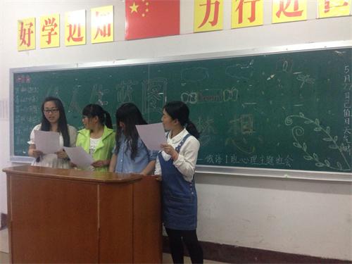 为了落实学校精神,加强学院班级建设,让同学们增进对自我的了解,解决在成长、学习上的诸多困惑,2014年5月16日澳门太阳成集团外国语学院开展了“绘人生蓝图,圆青春梦想”的心理健康教育主题班会活动。