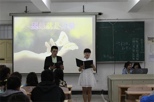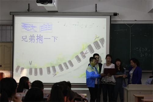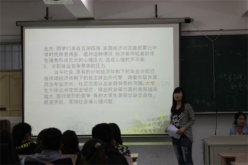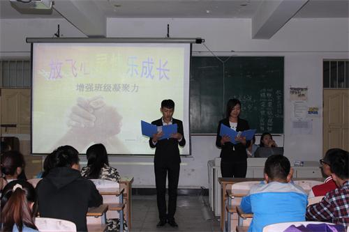 此次班会分为乐诗朗诵、常见心理问题及应对方法讲解、游戏时间、问卷调查、歌曲演唱、演讲、大合唱七个环节。