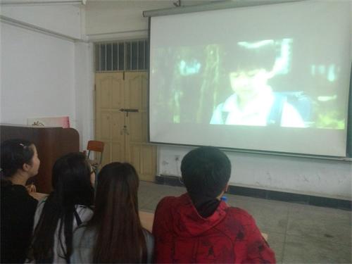 (旅游与地理科学学院师生在欣赏影片《奋斗》)