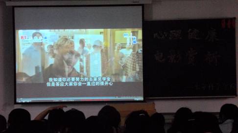 5月11日~5月25日,政法学院、历史文化学院、生命科学学院、环境工程学院分别组织学生观看了《80后》、《独自等待》、《楚门的世界》、《新大学生》和《蝴蝶效应》心理影片。约700余人观看了心理影片。心理电影赏析活动不仅丰富了同学们的大学生活,开阔了他们的视野,更使同学们在欣赏电影的同时,接受了心灵的洗礼,感悟到心理健康的真谛。