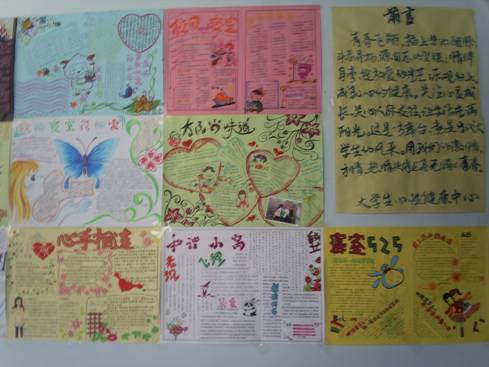通过手抄报比赛的形式,让宿舍各个成员参与进来,提高了大家对心理健康的关注与认识,达到了普及心理保健知识,增强宿舍同学之间的凝聚力,创造和谐的宿舍氛围的目的。