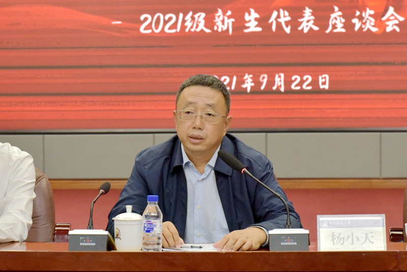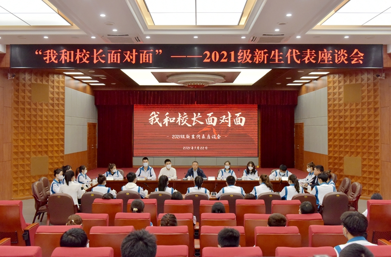 9月22日,学校在图书馆报告厅召开“我和校长面对面”2021级新生代表座谈会。校长杨小天出席座谈会并与新生代表面对面交流。相关部门负责人,来自各学院的80名2021级本科、研究生代表参加座谈会。