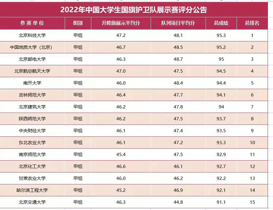 此次比赛,我受益匪浅。不仅领略到各所高校国旗护卫队的英姿,还感受到了比赛中团结向上、互帮互助的精神。在今后的生活中,我当始终铭记国旗带给我的崇高的使命,脚踏实地,志存高远。