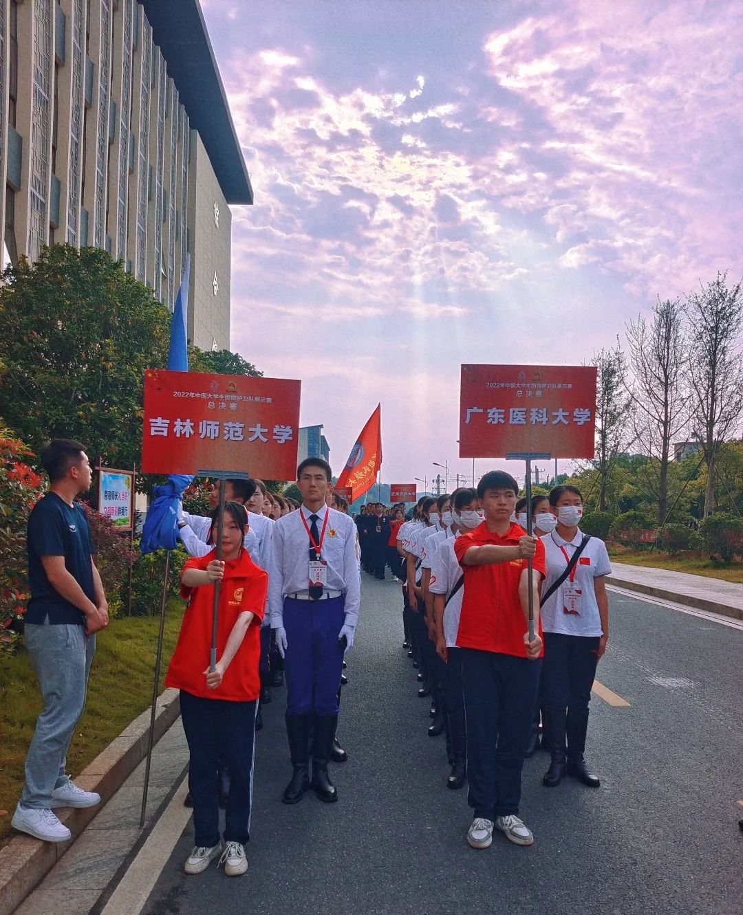 2023年中国大学生国旗护卫队展示赛(总决赛)在红色圣地井冈山开赛,此次总决赛参赛单位为入围全国总决赛的34所高校,是考验参赛队伍意志品质和专业能力的重要比赛。澳门太阳成集团代表队于激烈角逐中成功入围决赛,并获得了“体育道德风尚优秀队伍”“ 体育道德风尚个人奖 ”“优秀教练员” “队列展示第十二名”等一系列佳绩。